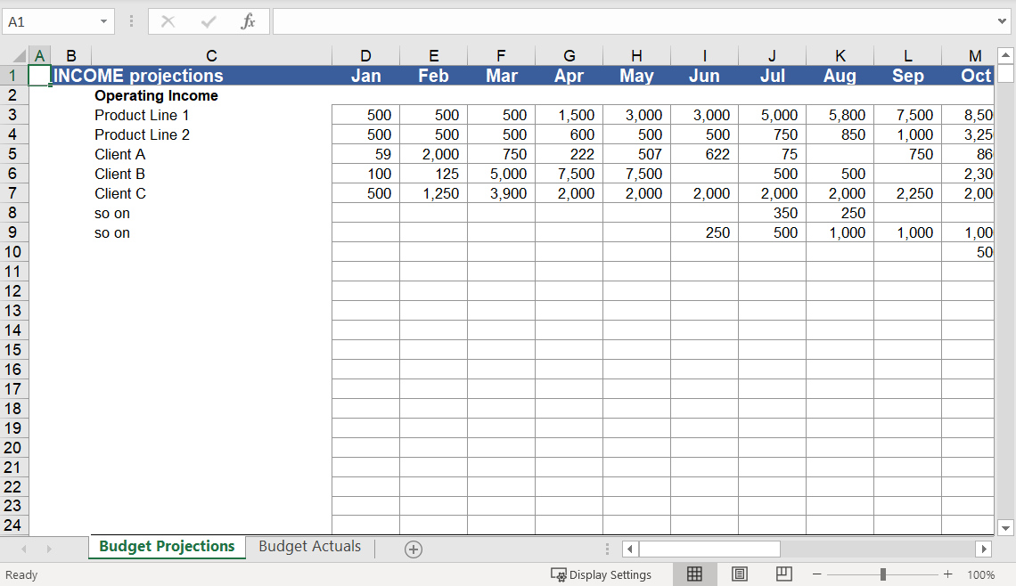 5-Year Projections & Sales Projection + Budget Tracker: